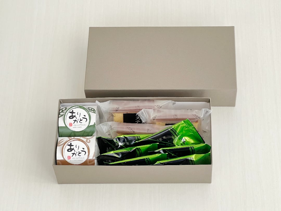 当店人気のお茶味の焼き菓子と極上カステラを詰め合わせました。